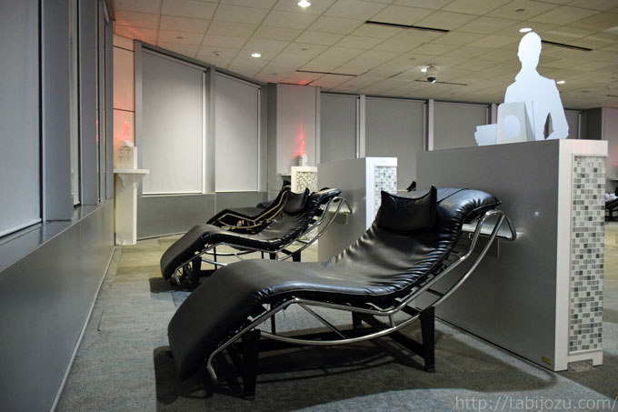 また、仮眠を取るならターミナル2の3階出国エリアにあるレストエリアがおすすめです。窓際のパーテーションで仕切られた部分にはリクライニングチェアが10脚ほど設置されています。