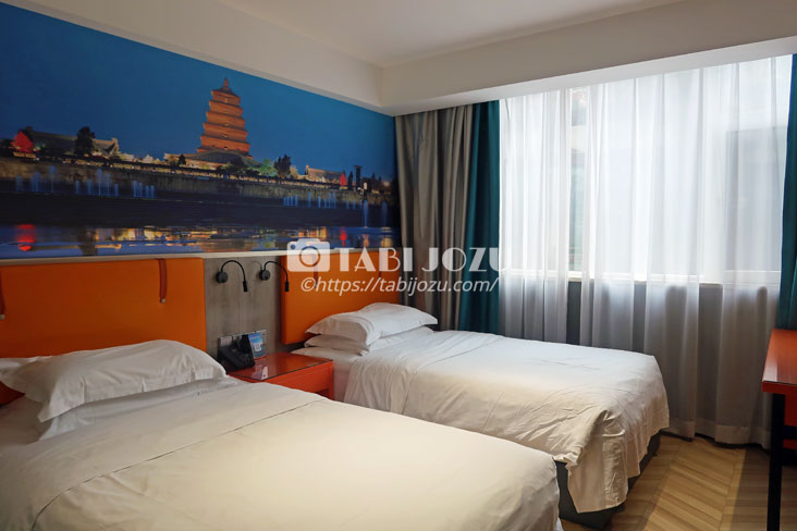 今回は2階のツインルームに宿泊しました。西安でのホテル選びで一番心配していた“クラクションの音”や“廊下の話し声”は、意外なほど気になりません。日本から用意していった強力な耳栓も、結局一度も出番がありませんでした…笑