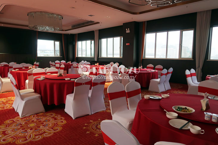 朝食会場は上層階にあるレストランで、団体向けの宴会場のような雰囲気でした。提供時間は7:00~9:30。会場が広いため、どの時間帯でも席探しに困ることはなさそうです。中華メニューが中心のビュッフェで、種類はしっかり揃っていましたが、味付けは正直少し物足りなさを感じました。