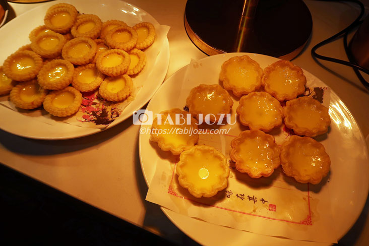 点心のほかに、香港・マカオで有名なエッグタルトも並んでいました。表面がこんがり焼けてサクサク、カスタードが入って美味しかったです。