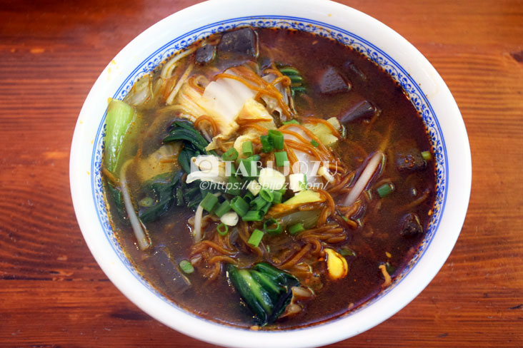 もう一品は、西安名物の羊血麺(20元) を注文。血を固めた弾力のあるゼリーのようなものが入った麺料理で、クセは強くありません。正直なところ「美味しいわけでも、不味いわけでもない」という印象でした。珍しい食材を気軽に試せるのも、旅先ならではの体験ですね。